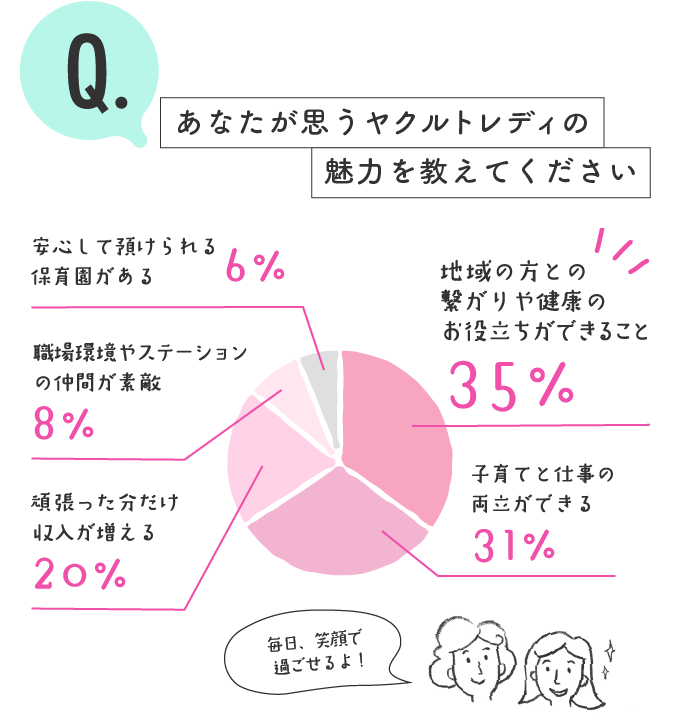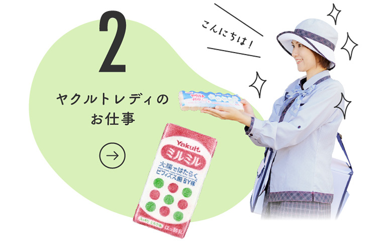 お客さまのご自宅やオフィスを訪問し、ヤクルトの商品や健康情報をお届けするお仕事です。 お届け先は決められたお客さまのもとへ訪問し、お客さまとの会話を楽しみながらお仕事ができます♪お客さまの笑顔に出会える楽しいお仕事です!