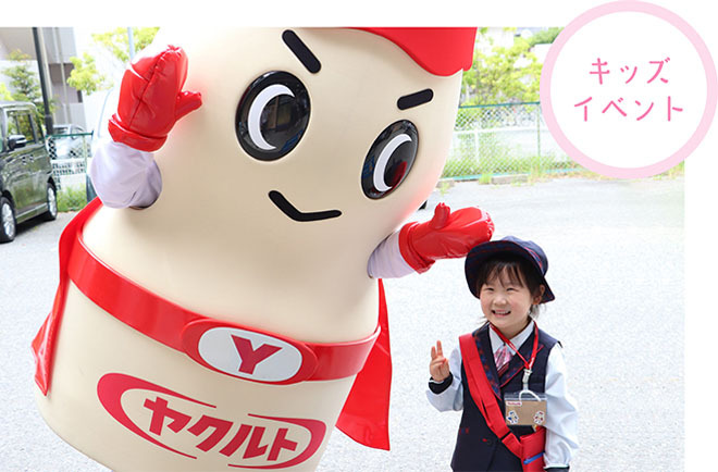 お子様がヤクルトレディの制服に着替え、実際に商品のお届け体験をします。