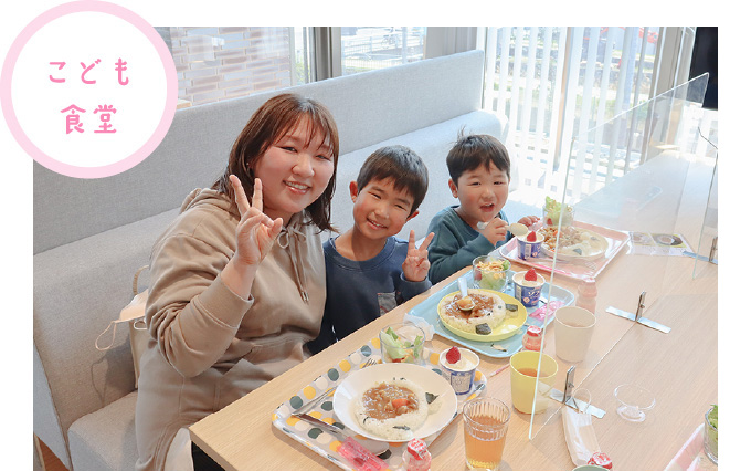 ヤクルトレディの親子対象に開催。社屋探検やオンラインヤクルト工場見学などのイベントを交えながら楽しく食事をしています。お子さまとの触れ合いの時間になるようお過ごしいただいています。