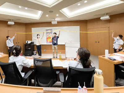 グループに分かれて学んだ商品の伝え方を実践します。研修仲間とも打ち解け楽しく会話も弾みます。
